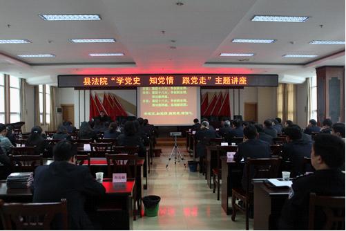 (本网讯) 为增强全体干警党性意识,作为“喜迎十八大、争创新业绩”系列活动之一,4月20日下午,县法院举办了“学党史、知党情、跟党走”学习讲座活动,邀请县委党校副校长秦立斌为全体干警讲授党史。