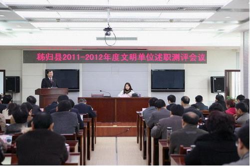 (本网讯)11月9日,秭归县召开2011-2012年度文明单位述职测评大会。县法院胡永峰副院长在大会上述职,接受测评代表的测评。