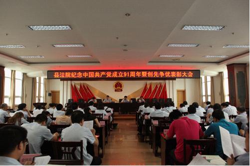 (本网讯 石欢)6月29日下午,县法院召开庆祝中国共产党成立91周年暨创先争优表彰大会。法院全体干警、劳务派遣人员及离退休老同志代表参加了会议,会议由党组副书记、副院长梅昌元主持。
