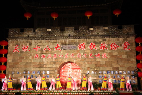 (本网讯)11月19日晚,团支部组织部分年轻干警观看了“庆祝十八大、颂歌献给党”文艺表演活动。精彩多姿的文艺表演既丰富了干警的业余生活,又让干警对秭归的民俗文化有了进一步的了解。